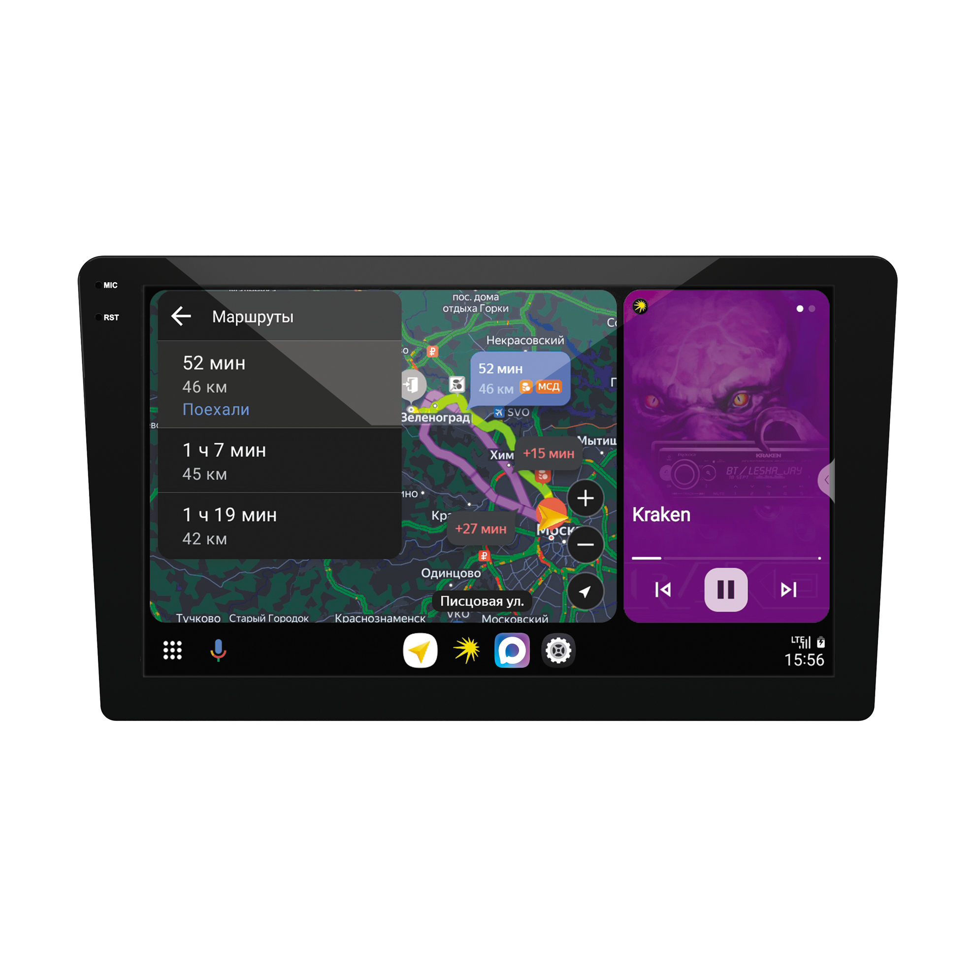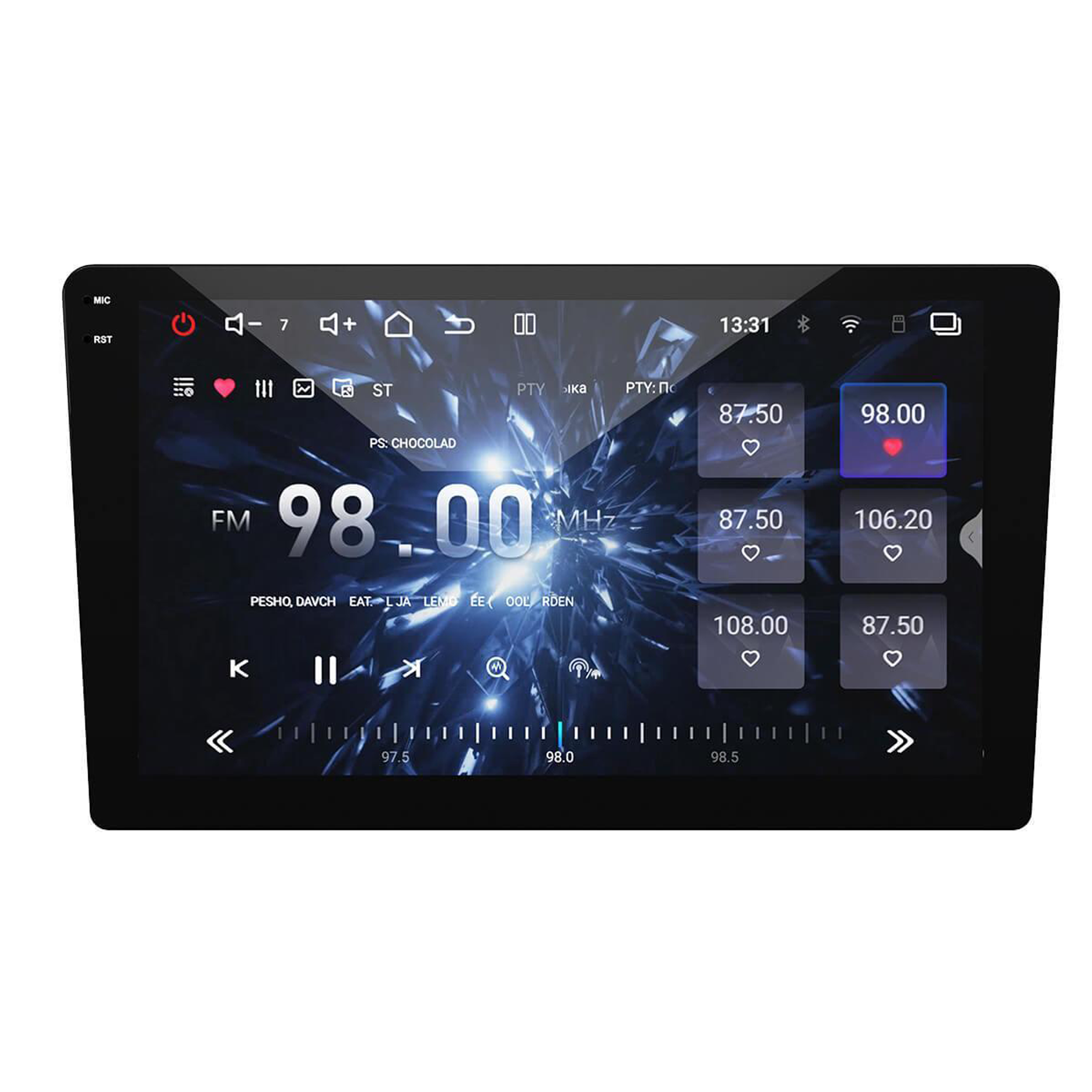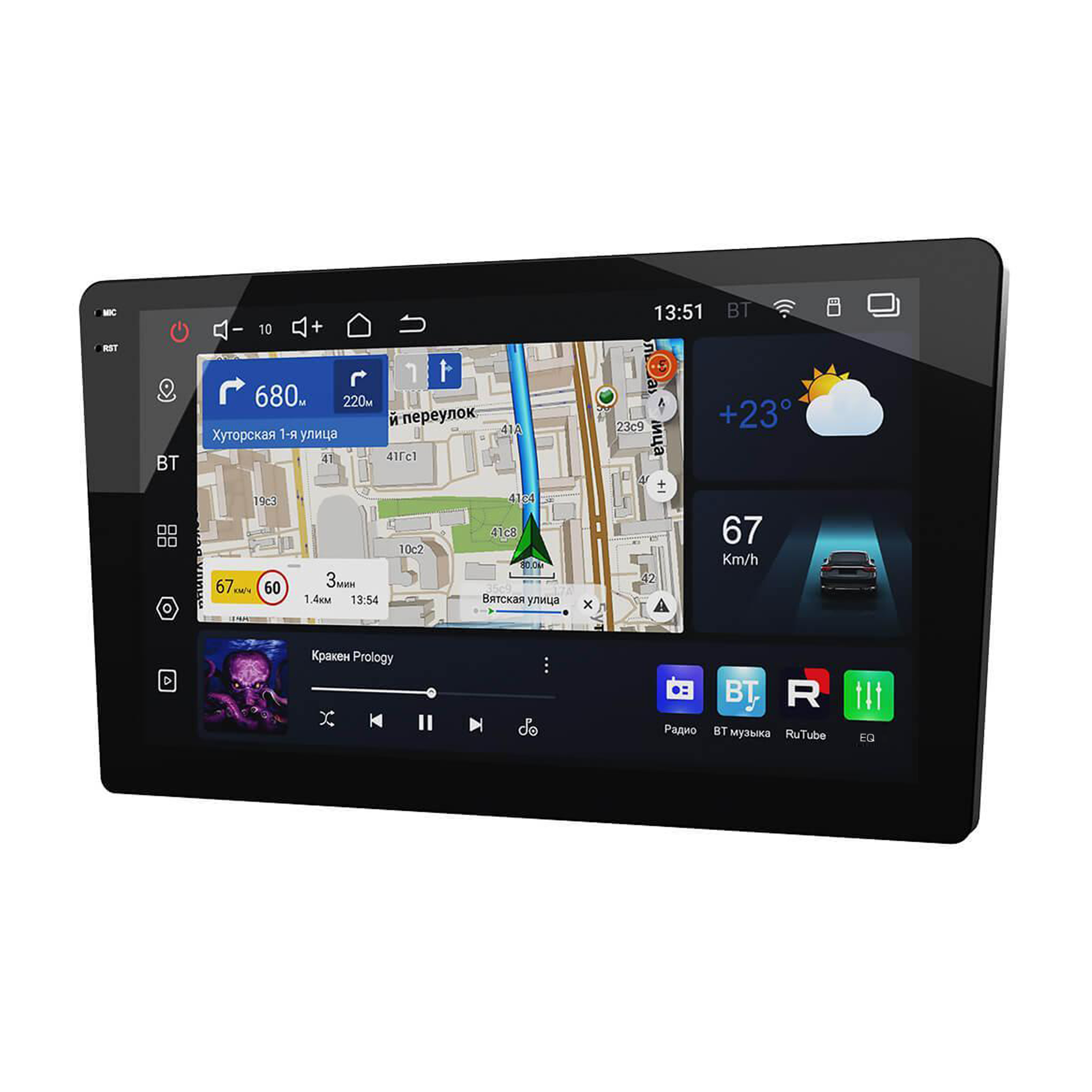 Красивое графическое меню на широкоформатном сенсорном 9-дюймовом (228 мм) In-Cell QLED-экране повышенной контрастности высокого разрешения 1280x720 точек, красочный многостраничный интерфейс управления с большим выбором функций и Android-приложений. Качественное звучание со встроенным усилителем с максимальной выходной мощностью 4x55 Вт.